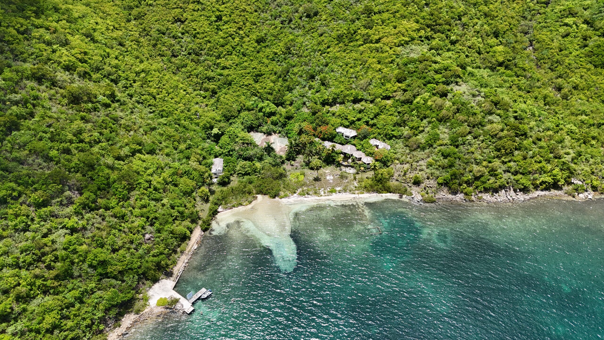 The current Owners had planned to redevelop the Estate, including an expansion and major improvement of the existing docks to approx 400 linear feet (approved by the BVI Building Authority and Town & Country Planning Board. There are approx. 5 acres of flat land behind the beach that would be ideal for Resort / communal facilites, swimming pools etc, etc.The vestiges of the previous Estate home including staff house, cisterns, tennis court etc, etc are still in place which may be removed or require substantial redevelopment. The Estate is currently boat access only, upon the wishes of the Owners to preserve the privacy of the Estate, but Rights of Way exist should road access to the Estate be required in the future. Utilities are close at hand.