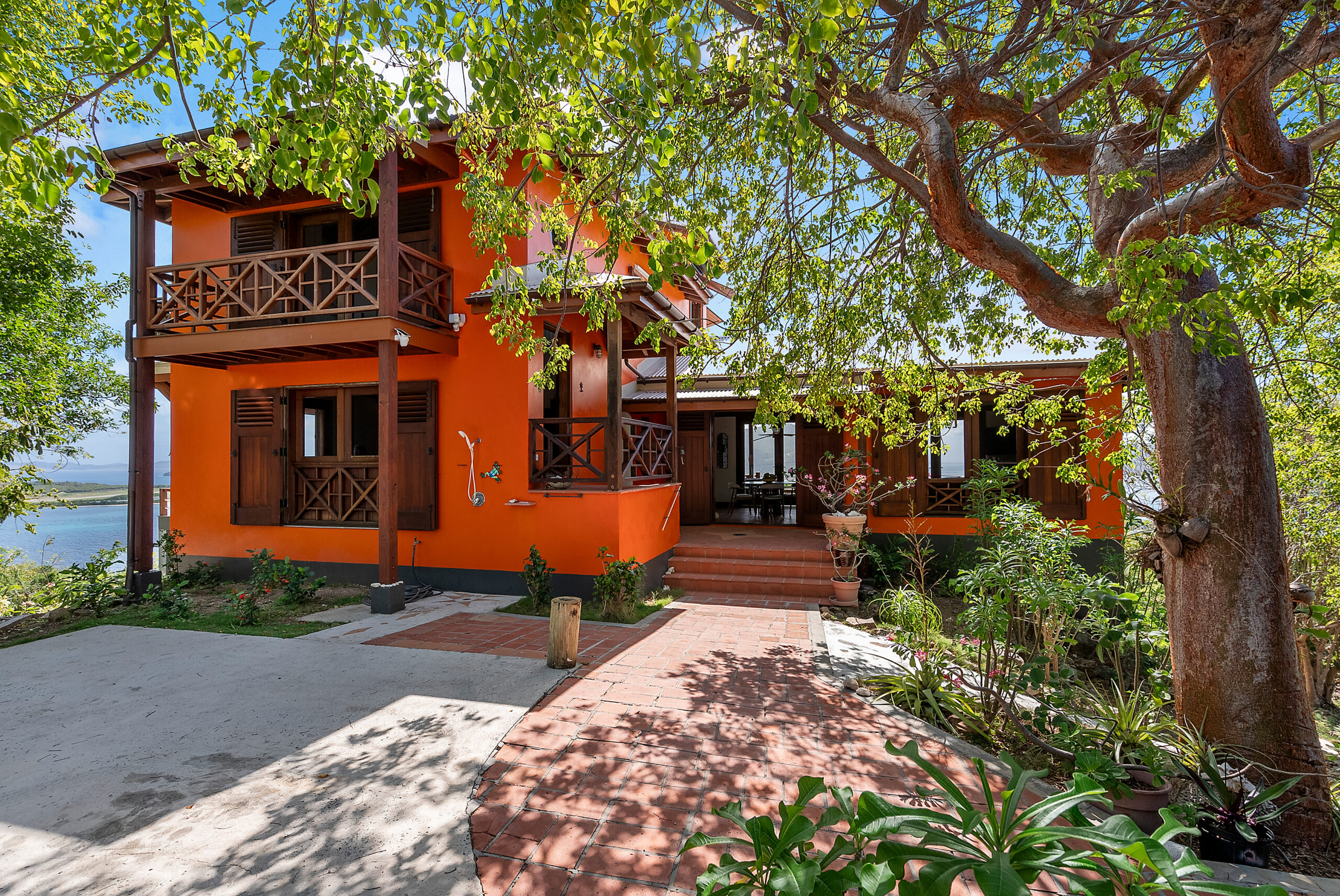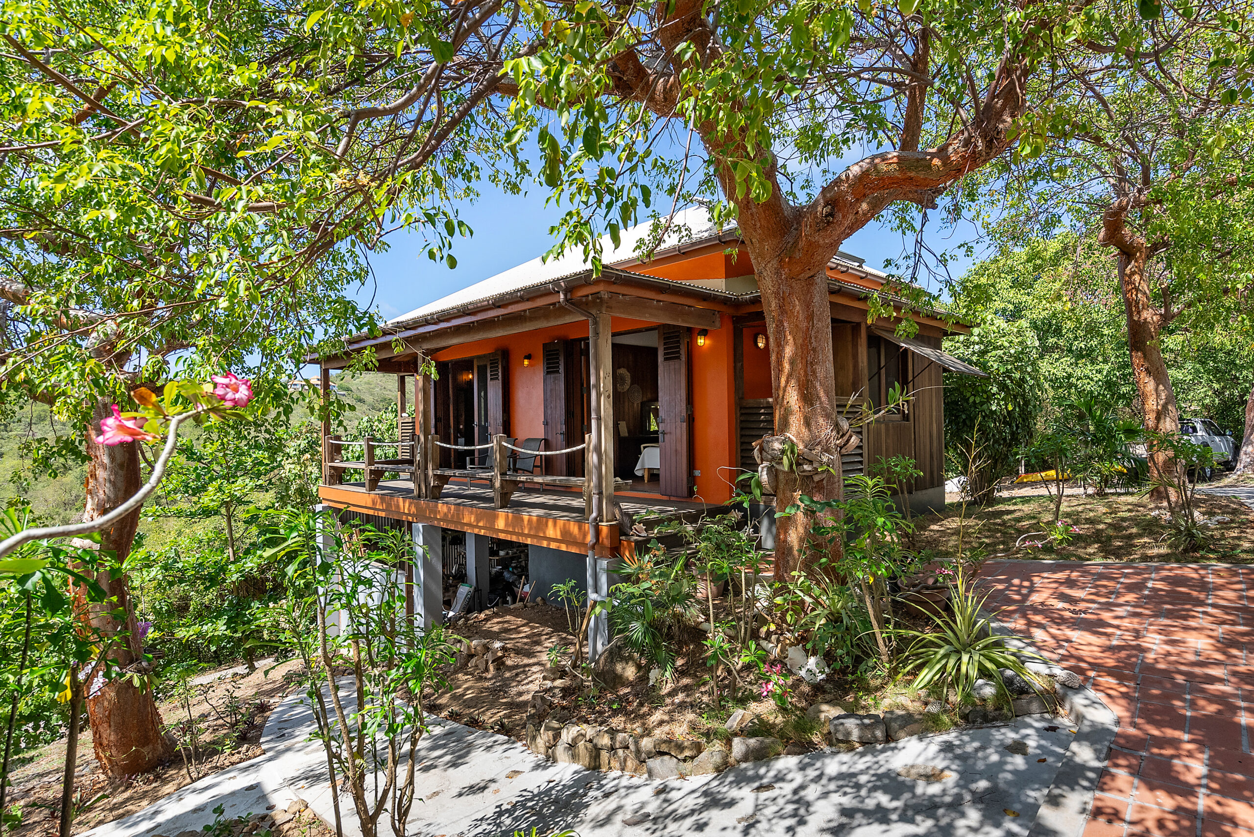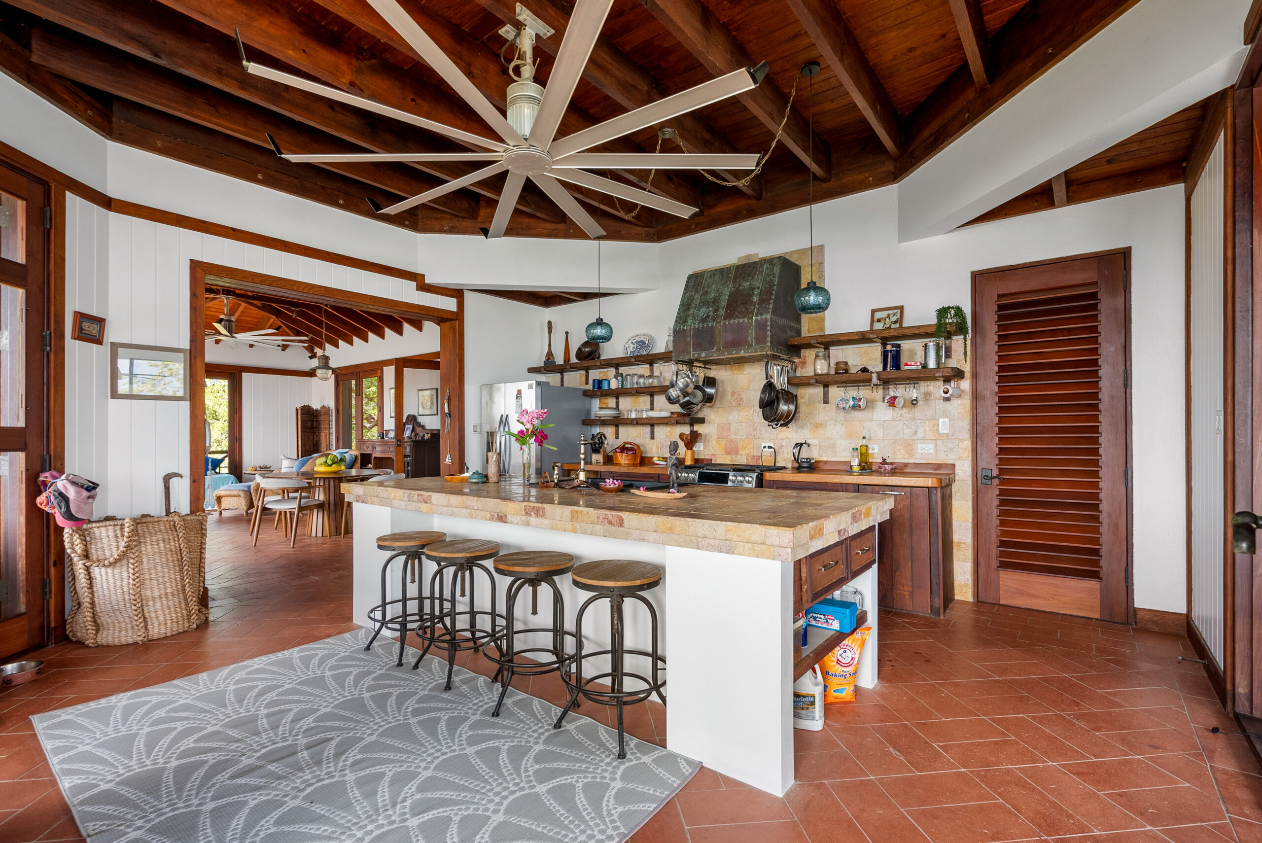 Set within approximately 2.2 acres of lush, fertile grounds, the property is surrounded by mature tropical landscaping, natural stone features, and flowering orchids that lend a sense of timeless Caribbean charm. Gentle trade winds flow continuously across the site, keeping the home cool and comfortable year-round.