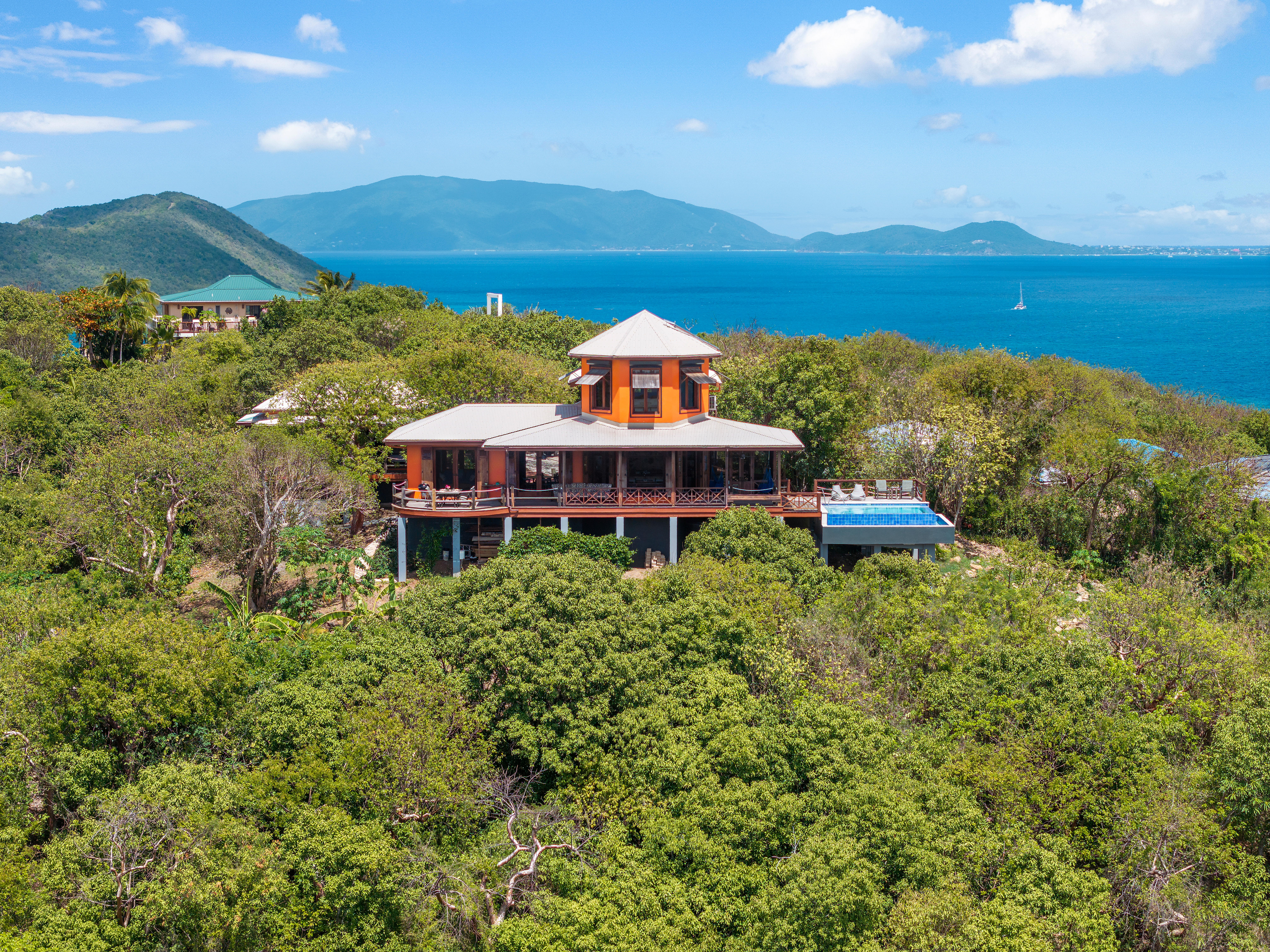 Perched high above the shimmering Caribbean Sea on the exclusive island of Great Camanoe, Sailor’s Sanctuary is a beautifully designed hilltop retreat offering complete privacy, captivating views, and effortless island living.