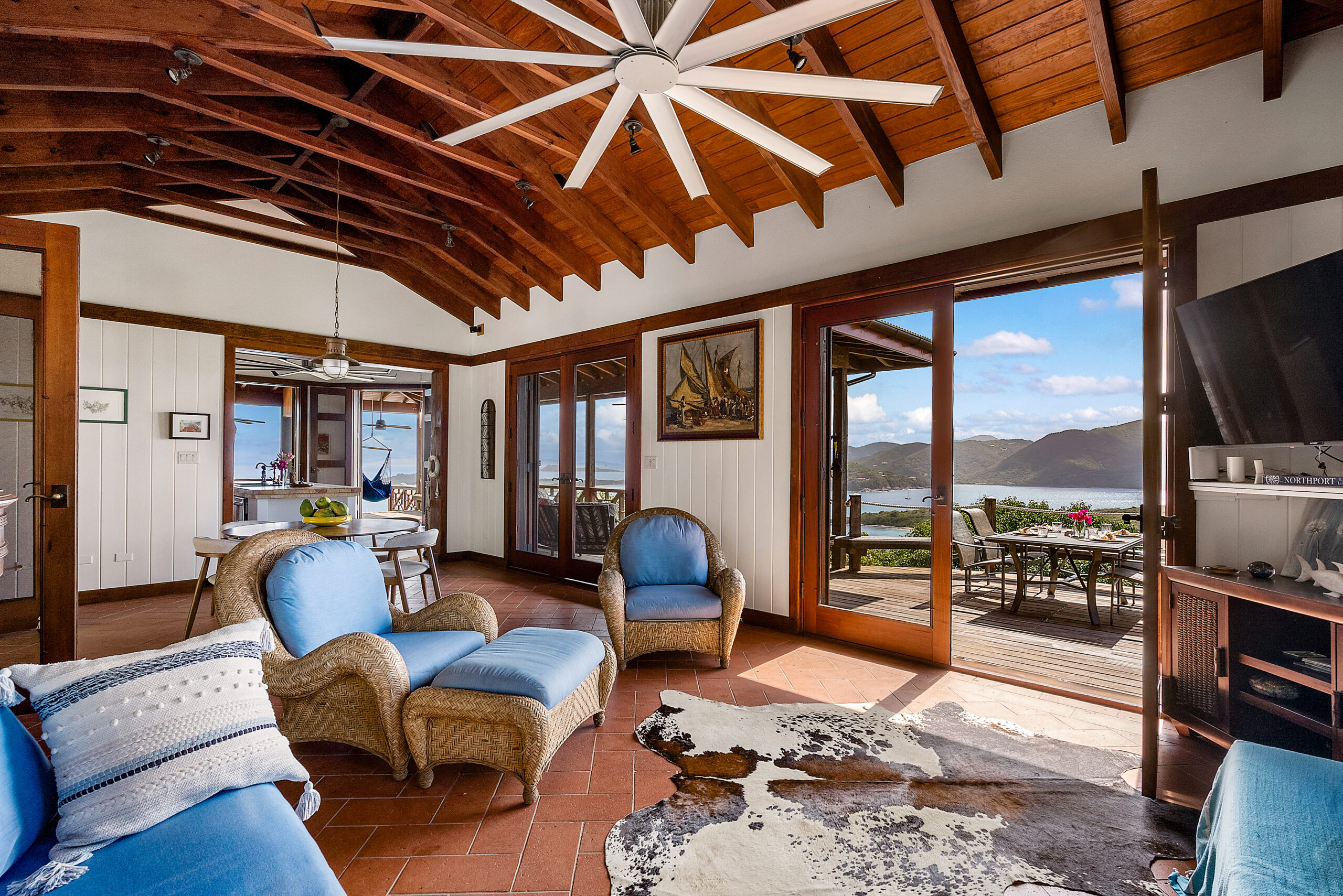 From its elevated vantage point, the home commands sweeping panoramas across Little Camanoe, Tortola and Guana Island, with distant glimpses reaching as far as St. Croix on the clearest of days. By day, the ever-changing hues of turquoise water sparkle below; by evening, spectacular sunsets melt into moonlit skies filled with stars.